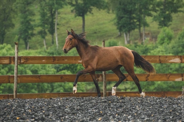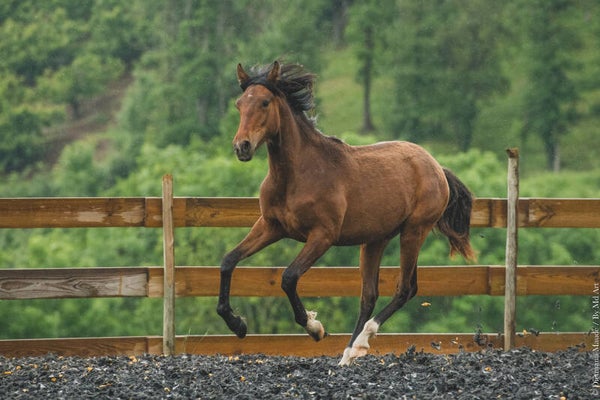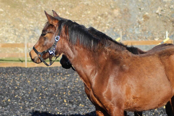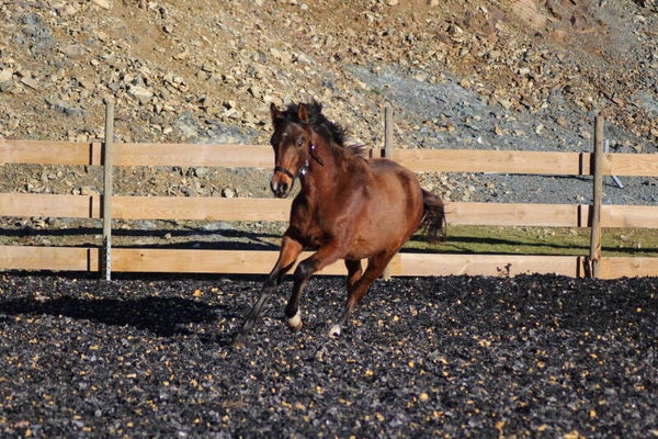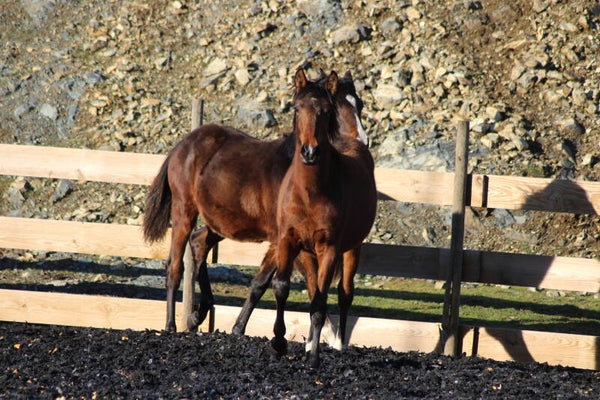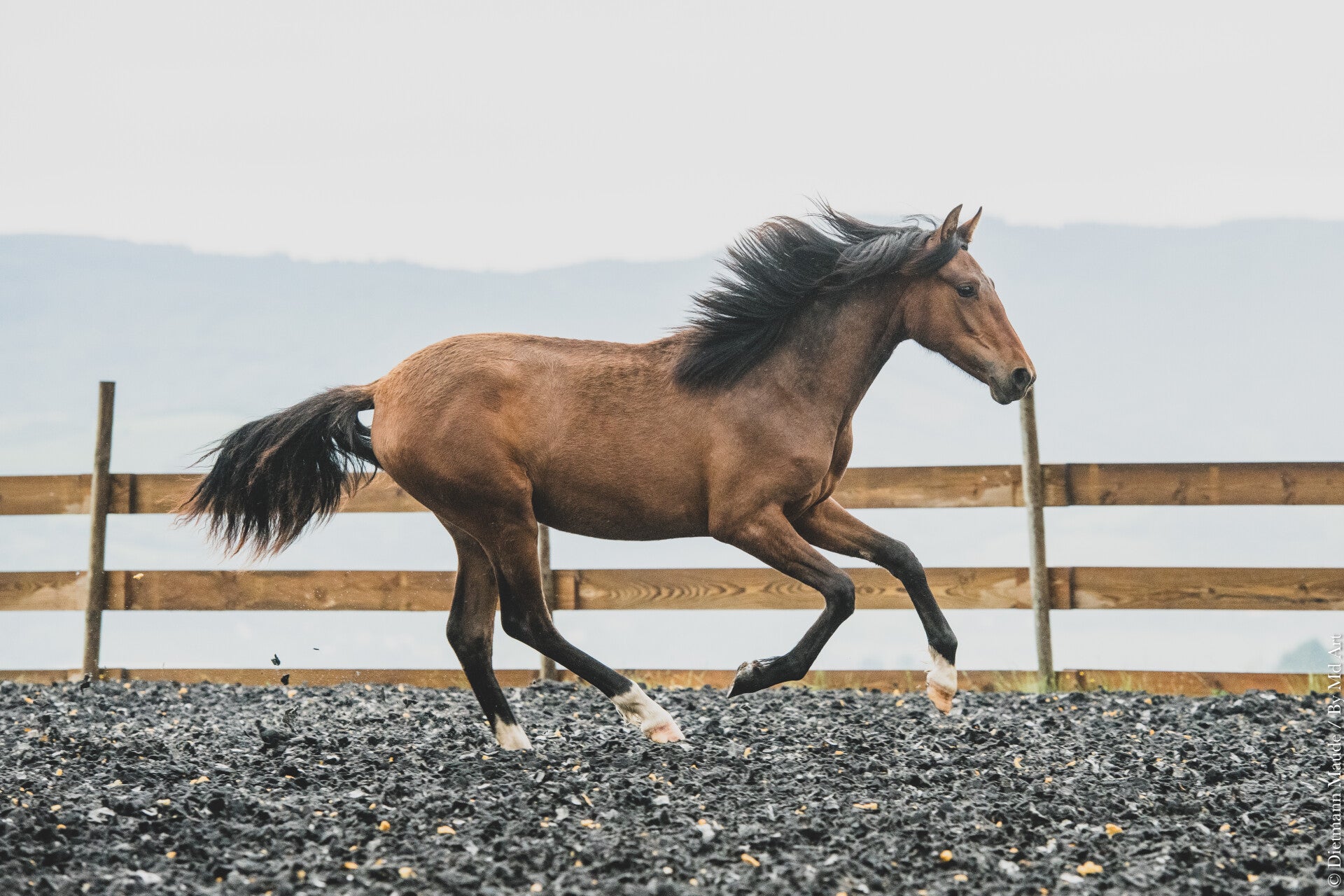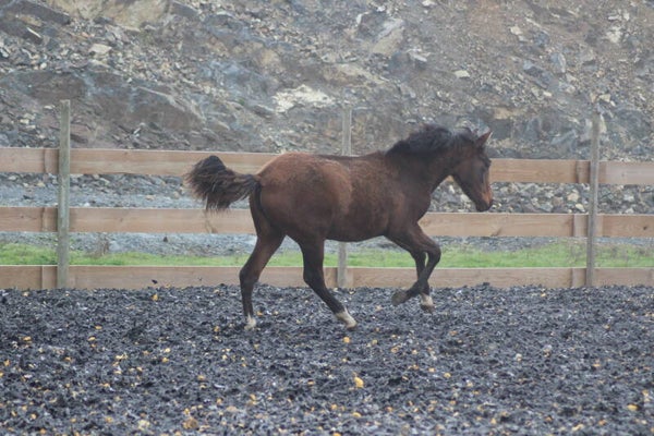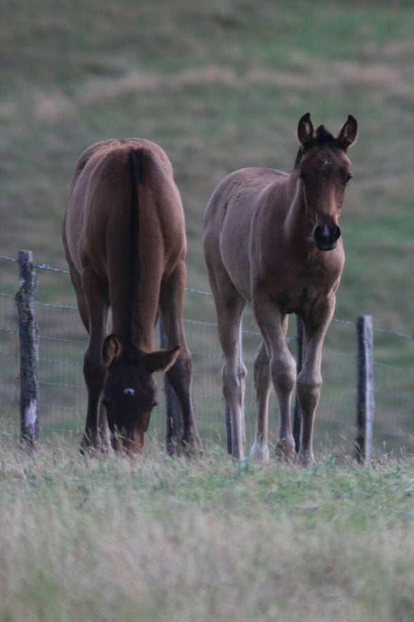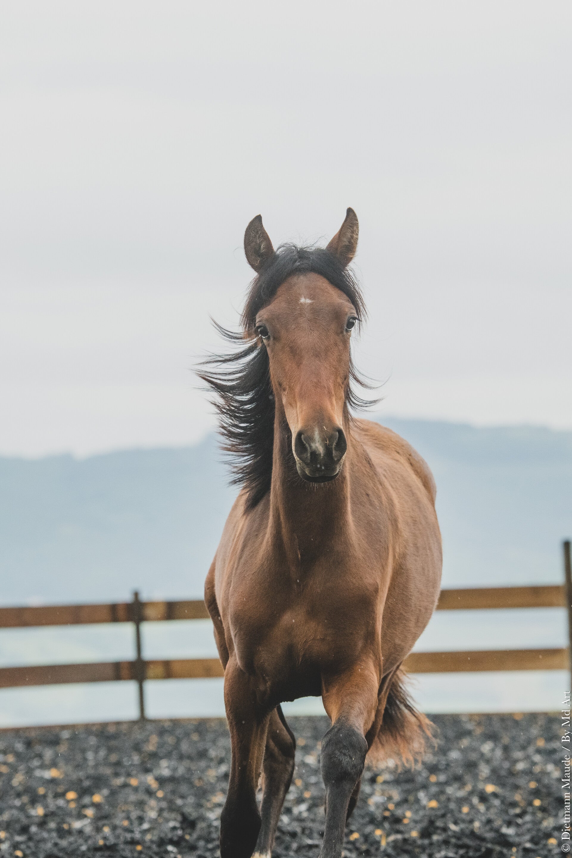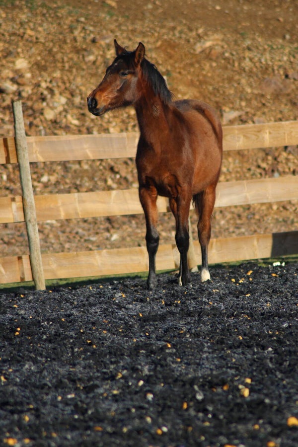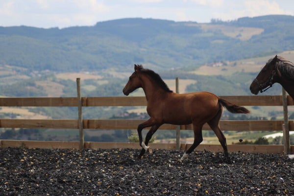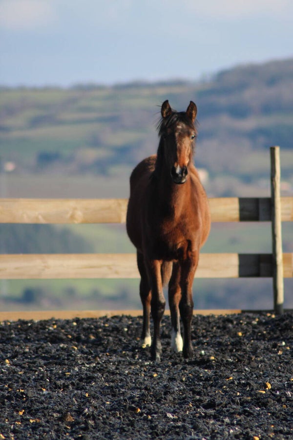 Vive, très curieuse et une vraie pot de glue 🥰 toujours collé a nous, très facile, licolé au pré, ultra confiante