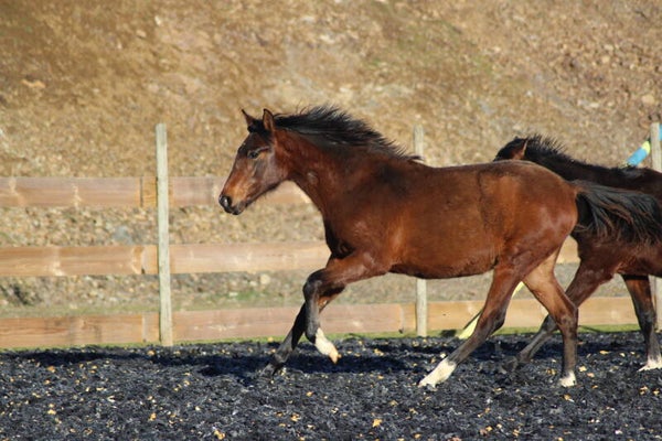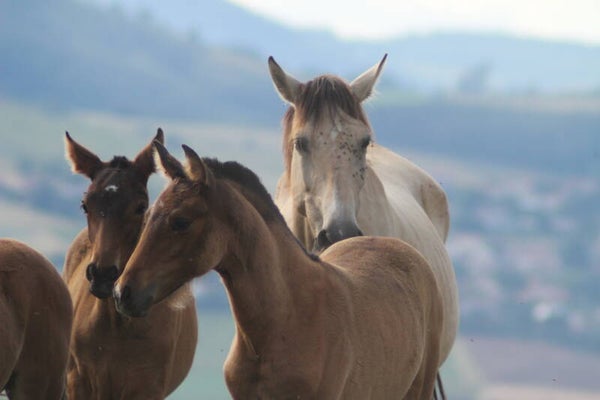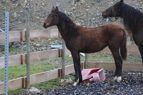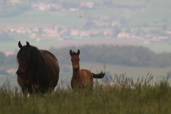 Elle a toujours vecu en troupeau et connait le box (en stalle la nuit avec plusieurs poulains)