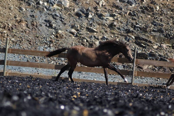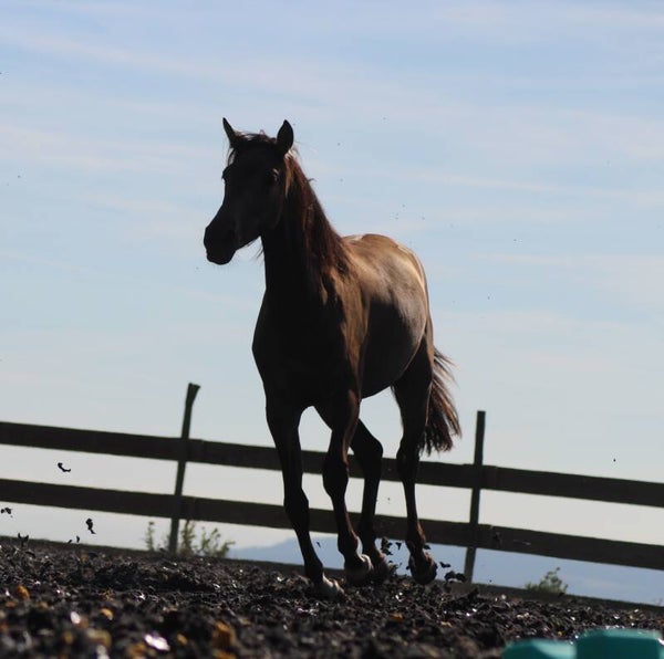 De caractère délicate et fine, elle sait aussi être énergique. C'est une jument qui a besoin de calme et de patiente avec quelqu'un qui prendra le temps de décomposer tout ce qu'on lui apprend pour que ca soit intégrer pour la vie.