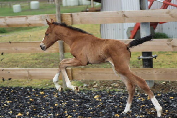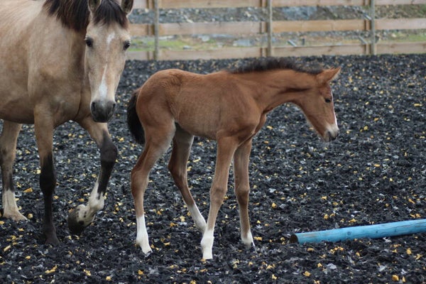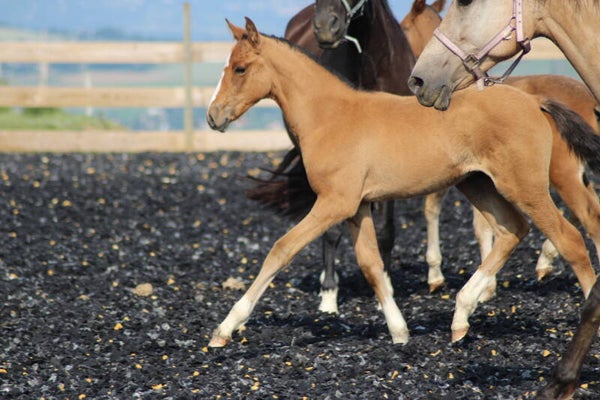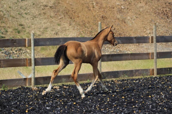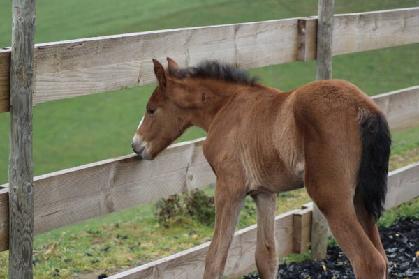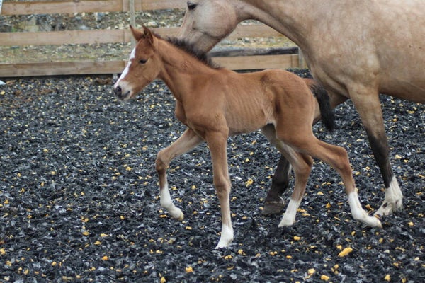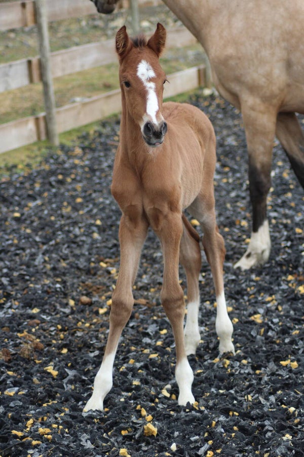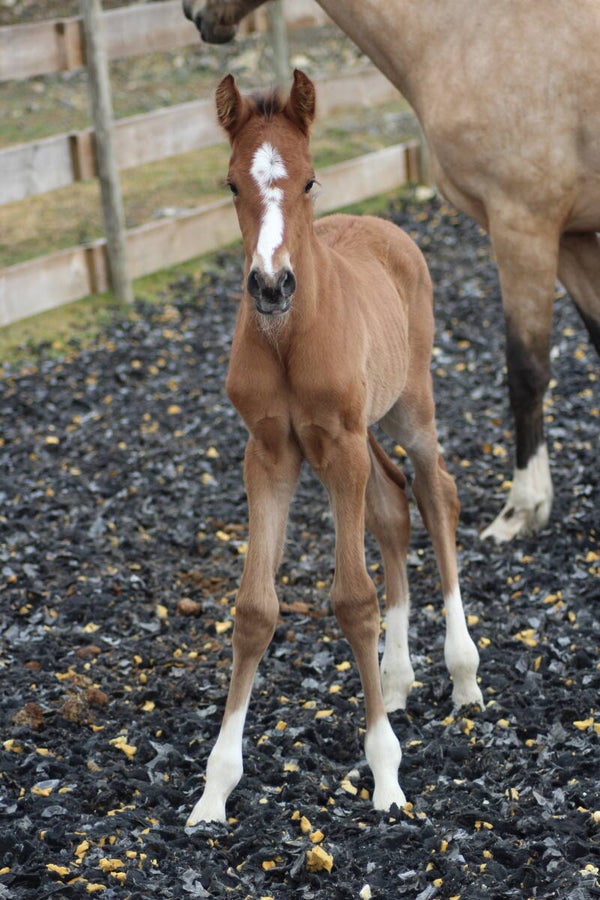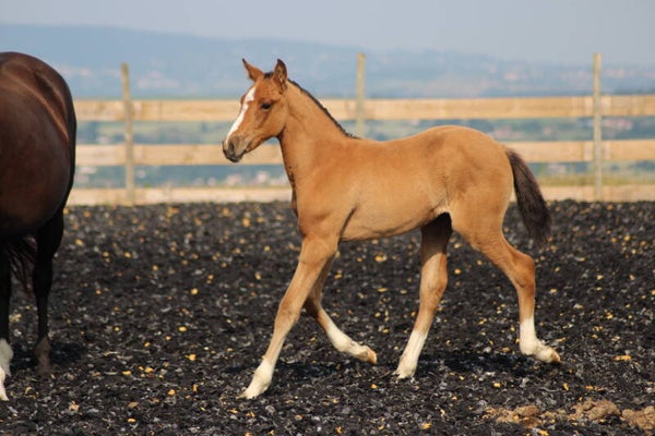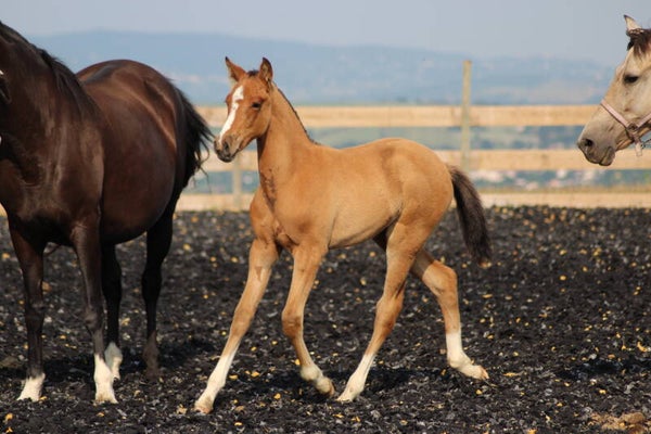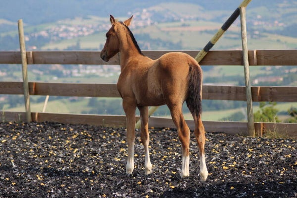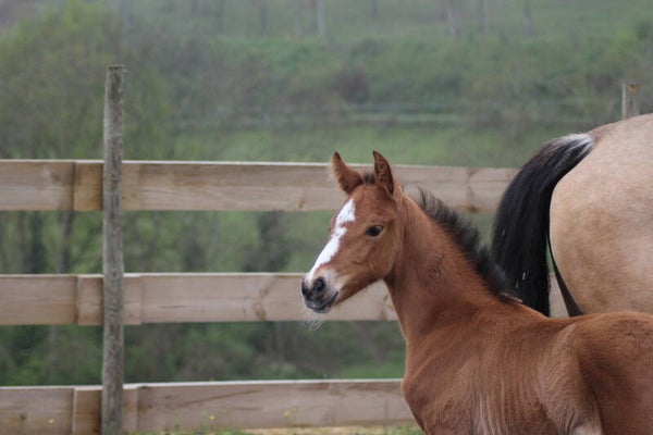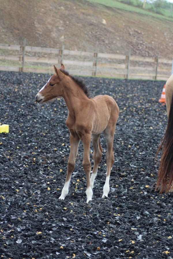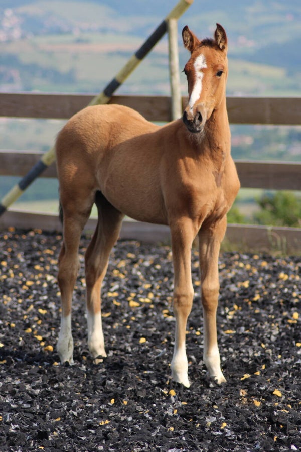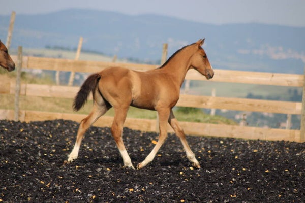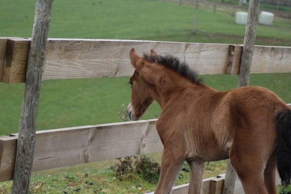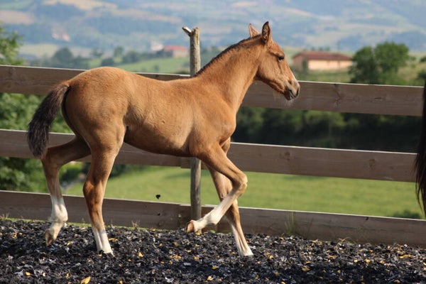 Il est sociabilisé depuis sa naissance avec une vie en troupeau avec hongre, juments et poulain.